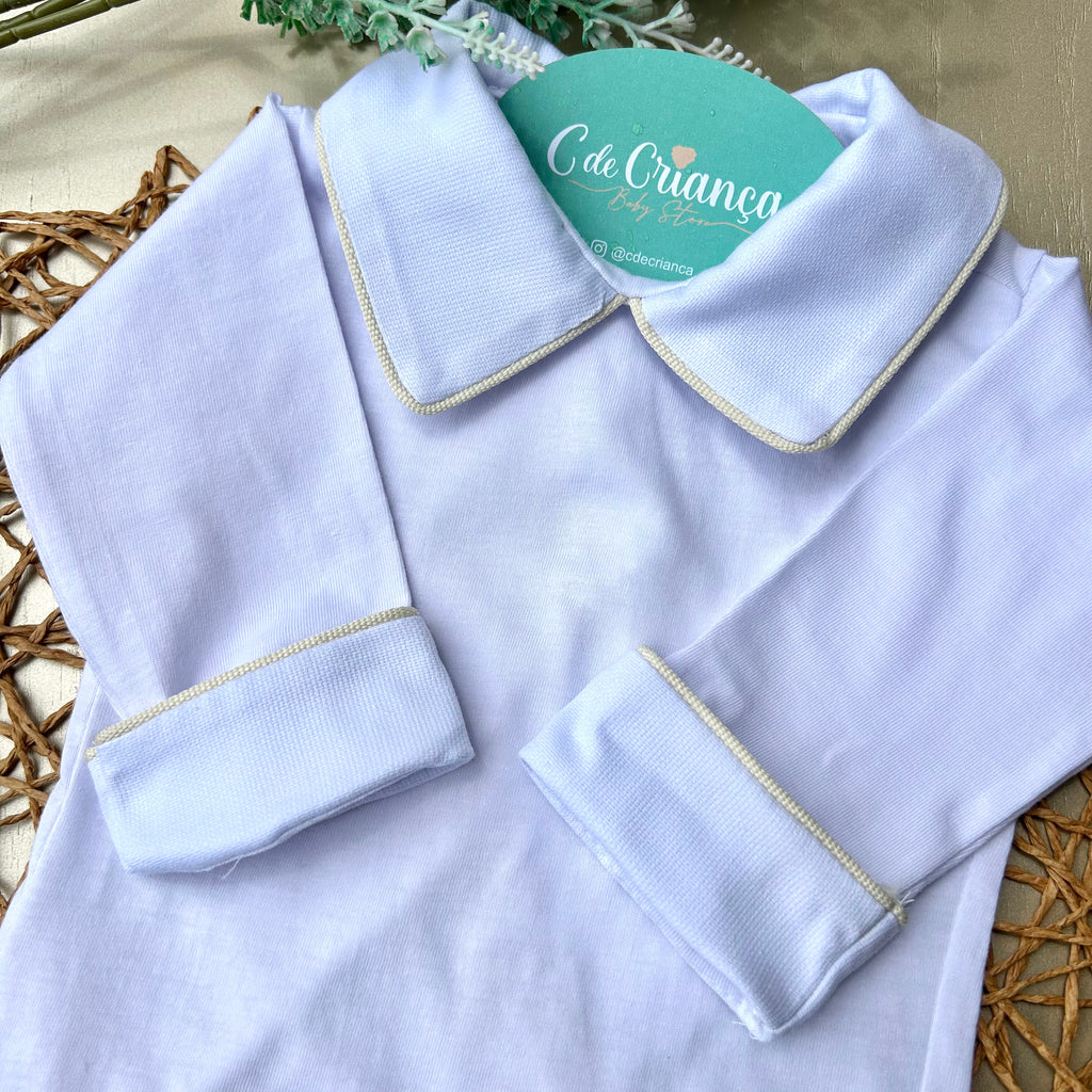 Body Branco - Viés Amarelo Punho Virado
